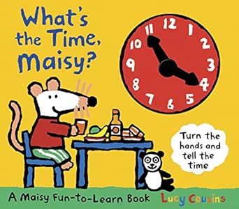 Each page of this colourful large-format board book has a die-cut window revealing a chunky, clunky clock with real hands and cogs that can be turned to show the time. At eight o’clock, Maisy gets up and decides what to wear; at ten o’clock she goes shopping, and at twelve o’clock she has lunch. New time-tellers can follow Maisy right the way through her day to bedtime at seven o’clock, turning the hands and telling the time with Maisy!